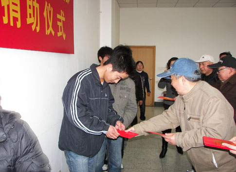 在捐款发放仪式上,老同志向贫困生提出热切要求和希望,勉励同学们正确对待贫困,克服暂时困难,用知识改变命运。受助同学农学0801班顾超代表受助同志发言,表示将不辜负老前辈的希望,把厚爱化为动力,立志勤奋学习,争取最大进步。