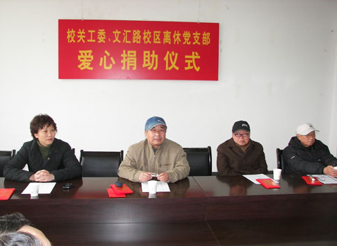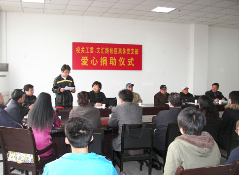4月1日下午,校关工委在大学生活动中心举行“扬大关工委、文汇路校区离休支部捐助仪式”,农学院、园保学院、动科学院、兽医学院、生技学院、经济学院、管理学院、艺术学院和化学化工学院的29位贫困生接受资助,他们来自山东、河北、吉林、江苏等6个省区。学生处和有关学院的负责同志出席了捐助仪式,本次捐助款15000元,其中,文汇路校区离休老干部刘正宇同志捐10000元,校关工委常务副主任梁隆圣同志捐5000元,这是文汇路校区老同志今年开展的第二次捐款。1月14日,文汇路校区离休支部的39位老同志捐款13150元,资助20位贫困生。