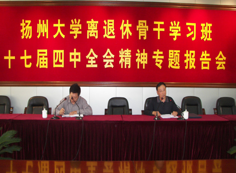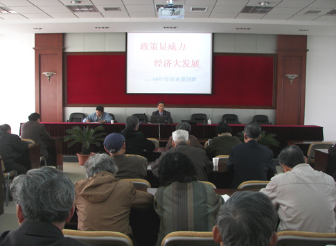 为深入学习贯彻党的十七届四中全会精神,实践科学发展观,加强和改进新形势下的离退休党建工作,推进“创建五好离退休干部党支部”活动,离退休工委于10月下旬举办了离退休老同志骨干学习班,各校区离退休党总支书记、支部书记和校区分工会主席等老同志骨干参加学习。学习班先后邀请社会发展学院费迅教授、原副校长杨家栋教授分别作了“四中全会开启执政党建设的新阶段”和“60年来的重大经济决策”的专题报告,组织学员外出参观、讨论,开阔了大家的视野,拓宽了工作思路,并进一步增强了大家的政治意识、全局意识和责任意识。