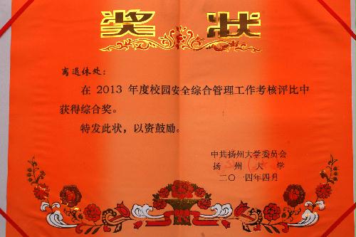 4月10日,学校召开了校园安全综合管理工作会议,我处在2013年度校园安全综合管理工作考核评比中获得综合奖。