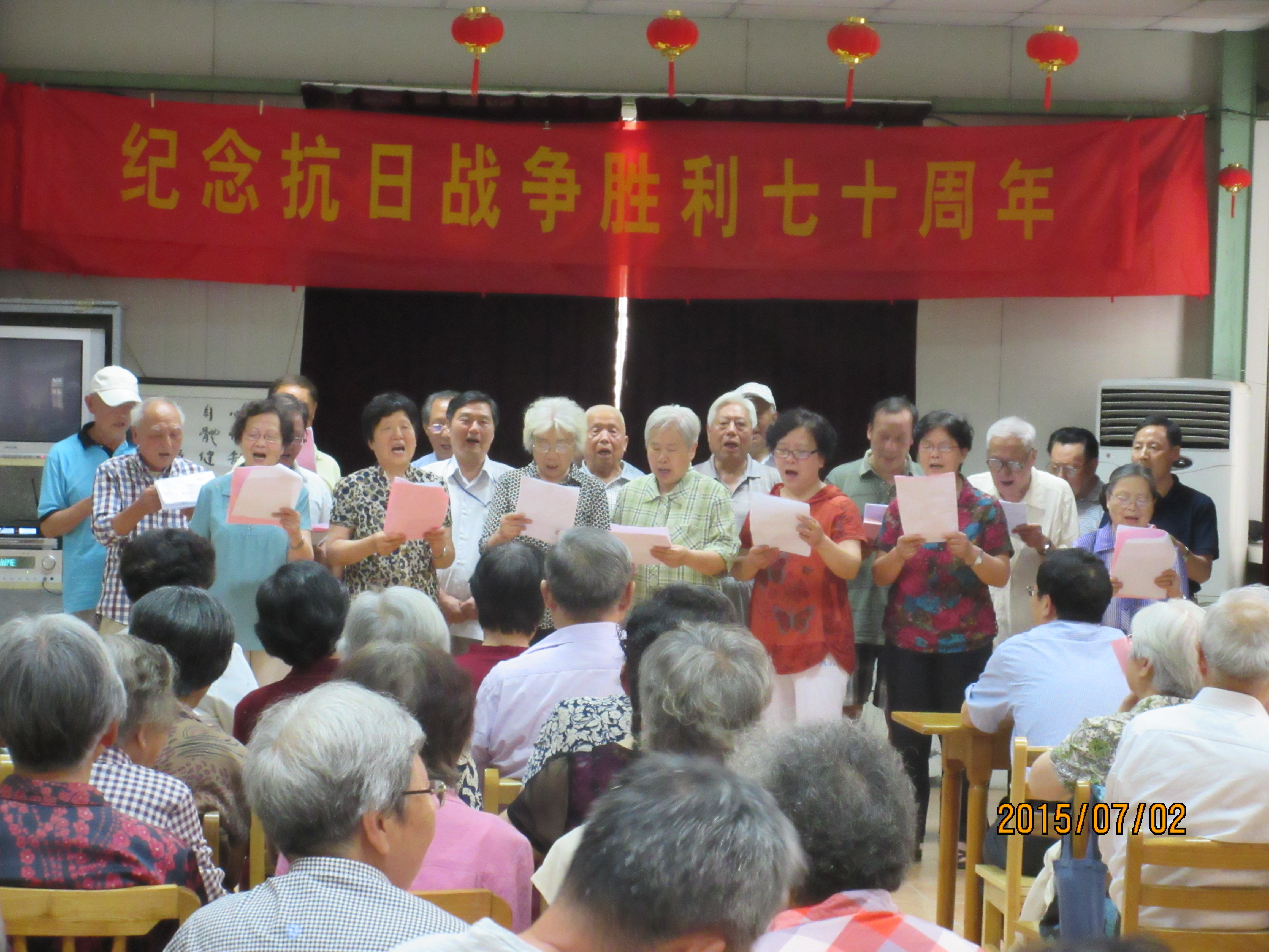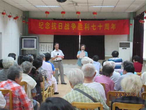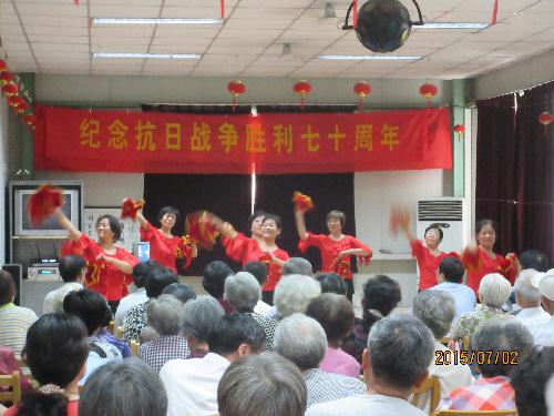 7月2日下午,路北校区离退休党总支隆重举行纪念中国人民抗日战争胜利70周年暨“展示阳光心态,体验美好生活,畅谈发展变化”联欢会。有100多名党员和老同志参与,路北校区唯一的一名参加过抗日战争的老战士王华同志也来到了活动现场,受到老同志们的热烈欢迎。活动以大合唱、歌、舞、诗歌朗诵、抗日故事、柔力球操等16个多种形式的节目表演,充分展示了路北校区老同志们缅怀先烈、不忘历史、追求幸福美好生活的精神面貌。历时两小时的联欢会气氛热烈,节目丰富多彩,受到老同志们的欢迎。
