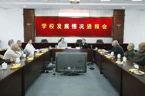 在重阳节来临之际,学校于10月20日上午召开发展情况通报会,向老领导、老同志代表通报学校发展情况。校党委书记姚冠新出席会议并讲话、校长焦新安通报工作,校党委副书记、纪委书记刘延庆主持会议,副校长洪涛出席会议。