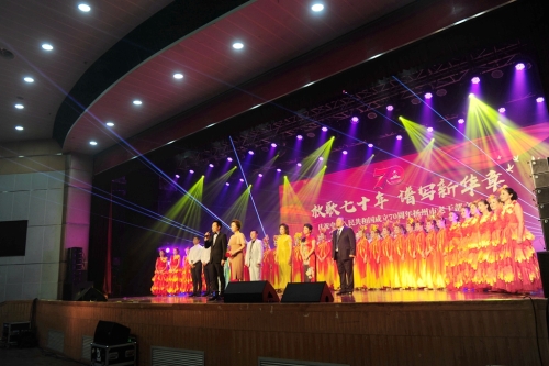9月27日下午,由我校离退休党委、离退休处与中共扬州市委组织部、市委老干部局联合举办的“放歌七十年,谱写新华章”庆祝中华人民共和国成立70周年全市老干部文艺演出在学校大学生活动中心小剧场隆重举行。扬州市委常委、组织部部长江桦,扬州市人大常委会副主任朱妍、扬州市人民政府副市长何金发、市政协副主席刘流,校纪委书记、监察专员周琴、校党委常委、组织部长薛小平等领导应邀出席活动。扬州市委老干部局、市离退休干部工委领导班子、扬州市市直和县市区老干部、关工委老同志、市直单位专兼职干部、老年大学、老干部社团及我校部分离退休老同志代表约500余名观众观看演出。