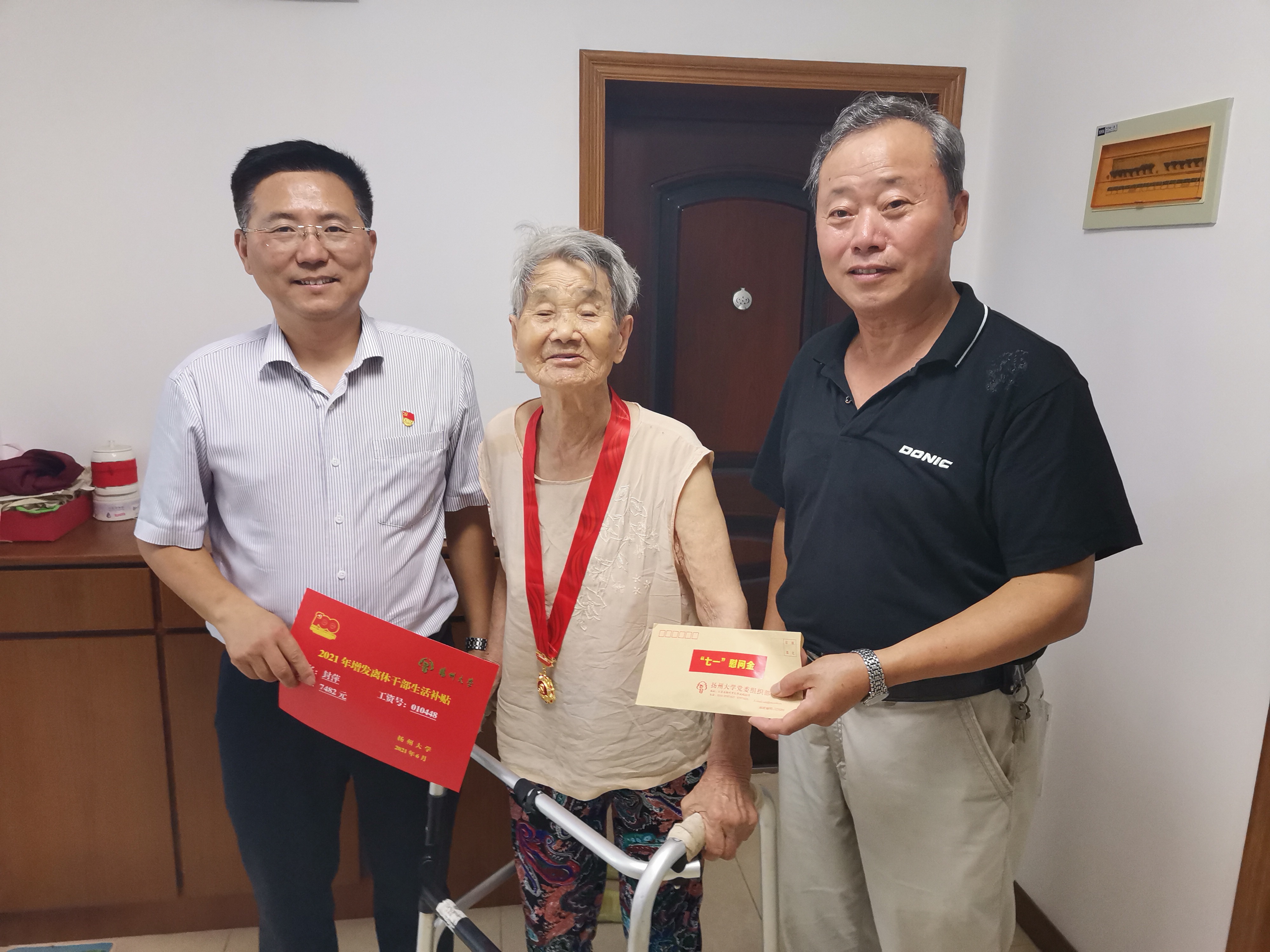 6月18日至6月27日,校党委书记姚冠新、校长焦新安、党委副书记叶柏森,纪委书记、监察专员周琴,以及副校长周如军等校领导,在离退休党委和行政主要负责同志陪同下,采取分组上门走访慰问的形式,为部分年老体衰、行动不便的老党员颁发了“光荣在党50年”纪念章,将党的关心关爱及时传递给老党员。在老党员家中,姚冠新书记、焦新安校长等领导与他们亲切交谈,详细询问了他们的身体状况和生活状况,向他们表达了深深的敬意,感谢他们为学校事业付出的辛勤劳动、作出卓越贡献。