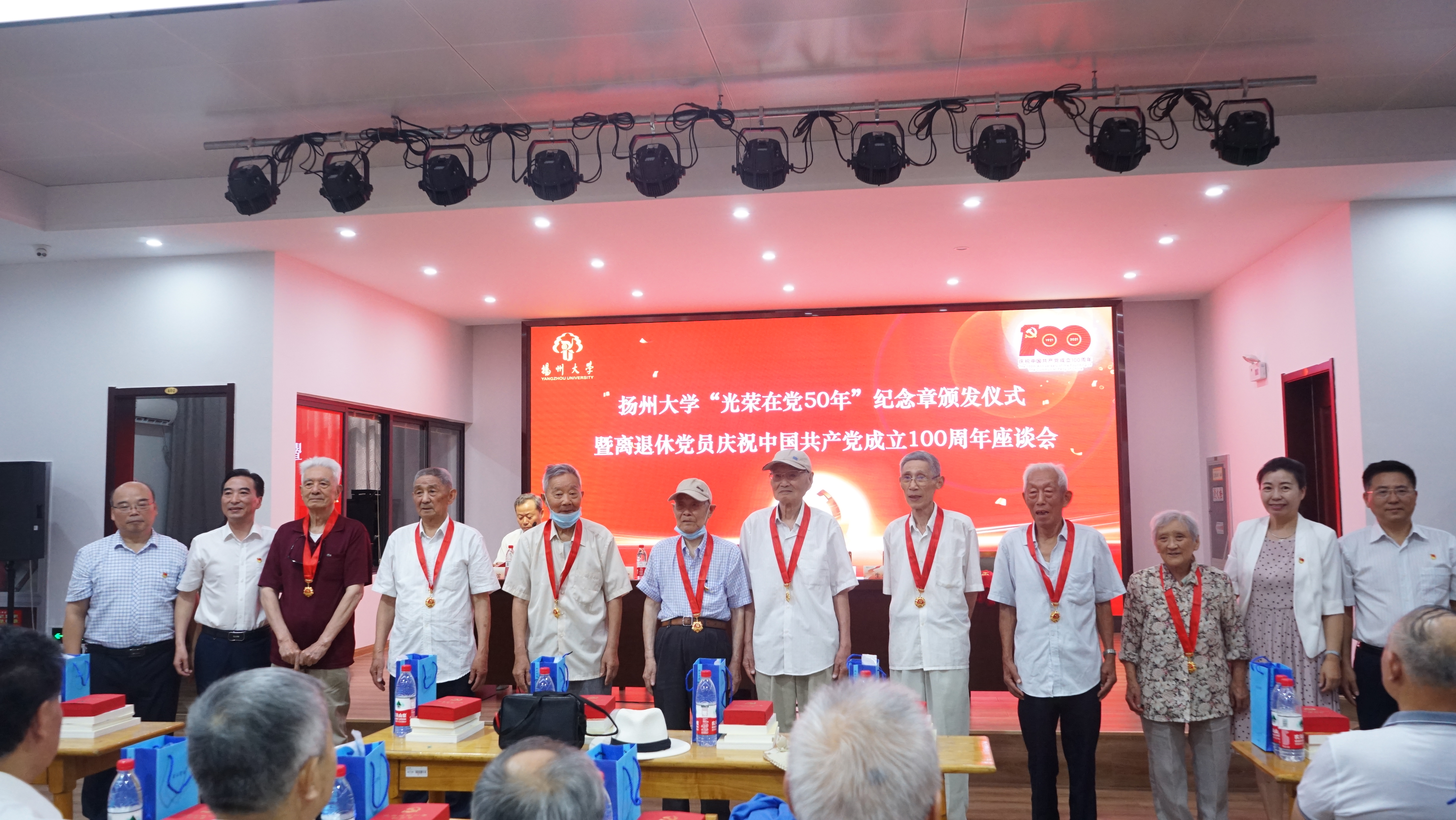 6月28与29日,离退休党委根据校党委组织部要求,统筹安排瘦西湖、文汇路、江阳路北、淮海路等四个校区开展纪念章颁发仪式。其中,瘦西湖、文汇路、淮海路三校区以召开离退休党员庆贺党的百年华诞座谈会形式集中组织纪念章发放仪式,校党委常委、副校长周如军分别出席瘦西湖、文汇路校区会议并讲话。江阳路北校区以离退休老同志庆祝党的百年华诞文艺表演形式集中组织纪念章发放仪式,校党委常委、组织部长应邀出席并讲话。在庄重简朴的仪式上,周如军副校长、薛小平常委携离退休党委和行政主要负责,分批次为老党员们颁发“光荣在党50年”纪念章,并代表学校党委和行政向老党员们表示崇高敬意和衷心祝贺,对老党员门为学校事业发展作出的历史性贡献表示充分肯定和高度赞赏,希望老党员、老前辈们为学校事业发展继续建言献策、凝心聚力,为奋力开启高水平研究型大学建设新征程作出新的更大贡献!