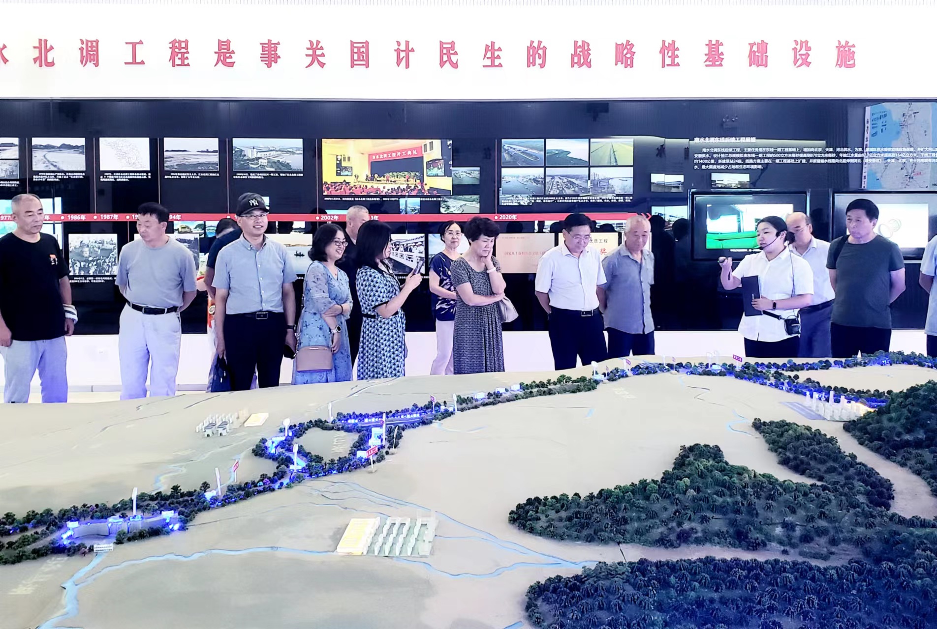 在离退休党委书记生永明、处长张建军带队下,全体成员在江都水利工程管理处,先后参观了南水北调展示馆、江都水利枢纽展览馆、江都水利枢纽第四抽水站,观看了南水北调东线工程及江都水利枢纽专题片,结合沙盘听取工作人员关于南水北调东线工程建设运行情况的介绍。