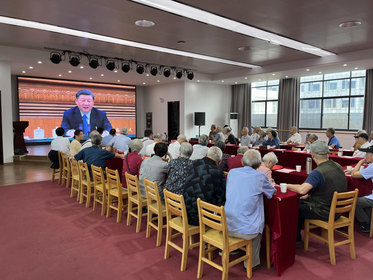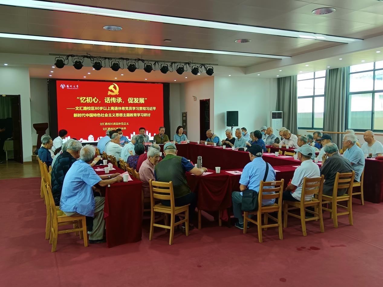 本次活动由文汇路校区离退休党总支书记沈渭滨主持,离退休处、离退休党工委全体领导和文汇路离退休党总支全体支委、支部书记出席了本次活动。文汇路校区80岁以上老党员代表近50人参加了本次学习研讨活动。