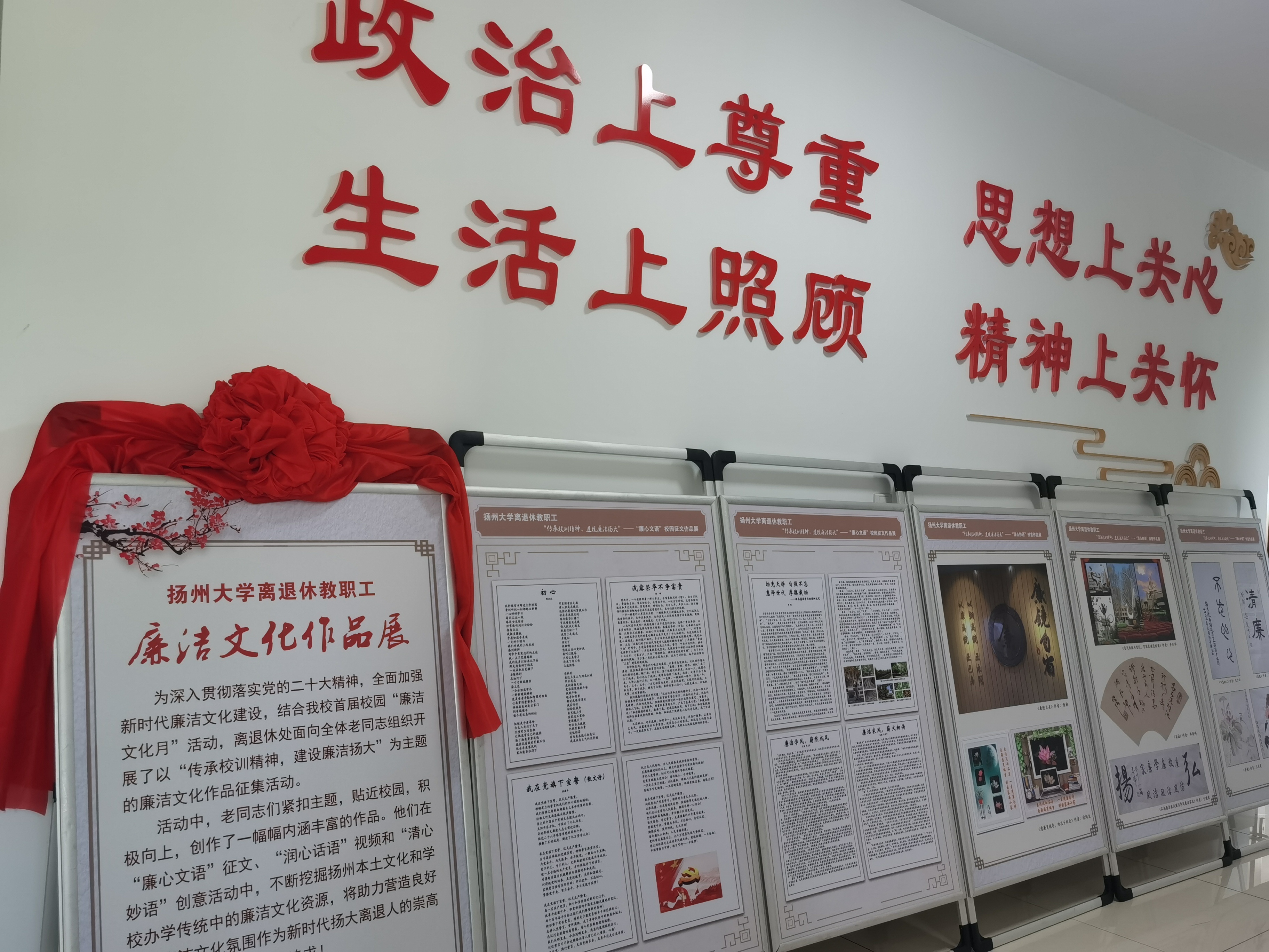 为深入贯彻落实党的二十大精神,全面加强新时代廉洁文化建设,助推我校首届校园“廉洁文化月”活动,离退休党工委组织开展了以“传承校训精神,建设廉洁扬大”为主题的廉洁文化作品展。