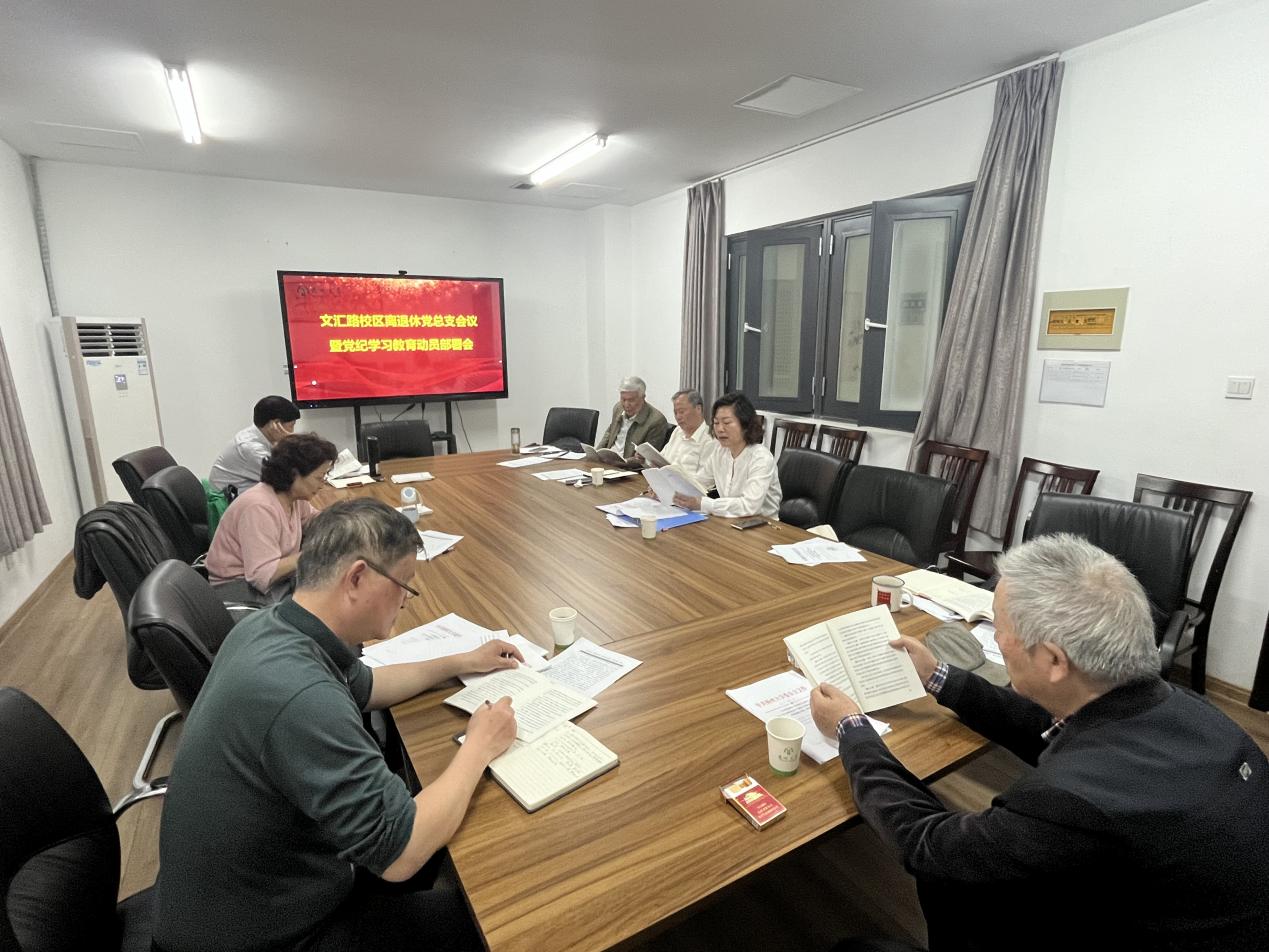 在全党积极开展党纪学习教育之时,为组织广大老同志党员深入学习贯彻新修订的《中国共产党纪律处分条例》,引导他们始终做学纪、知纪、明纪、守纪的表率,5月11日上午,文汇路校区离退休党总支举行了党纪学习教育动员部署会。离退休处夏玉荣副处长出席会议。会议由文汇路校区党总支沈渭滨书记主持。