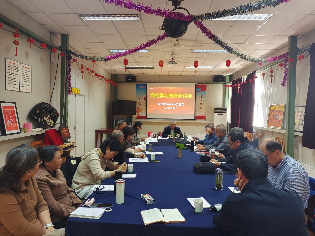 5月8日下午,江阳路北校区离退休党总支召开总支委员(扩大)会暨党纪学习教育研讨会。会议由党总支书记周详同志主持,全体党总支委员及各支部委员出席会议。