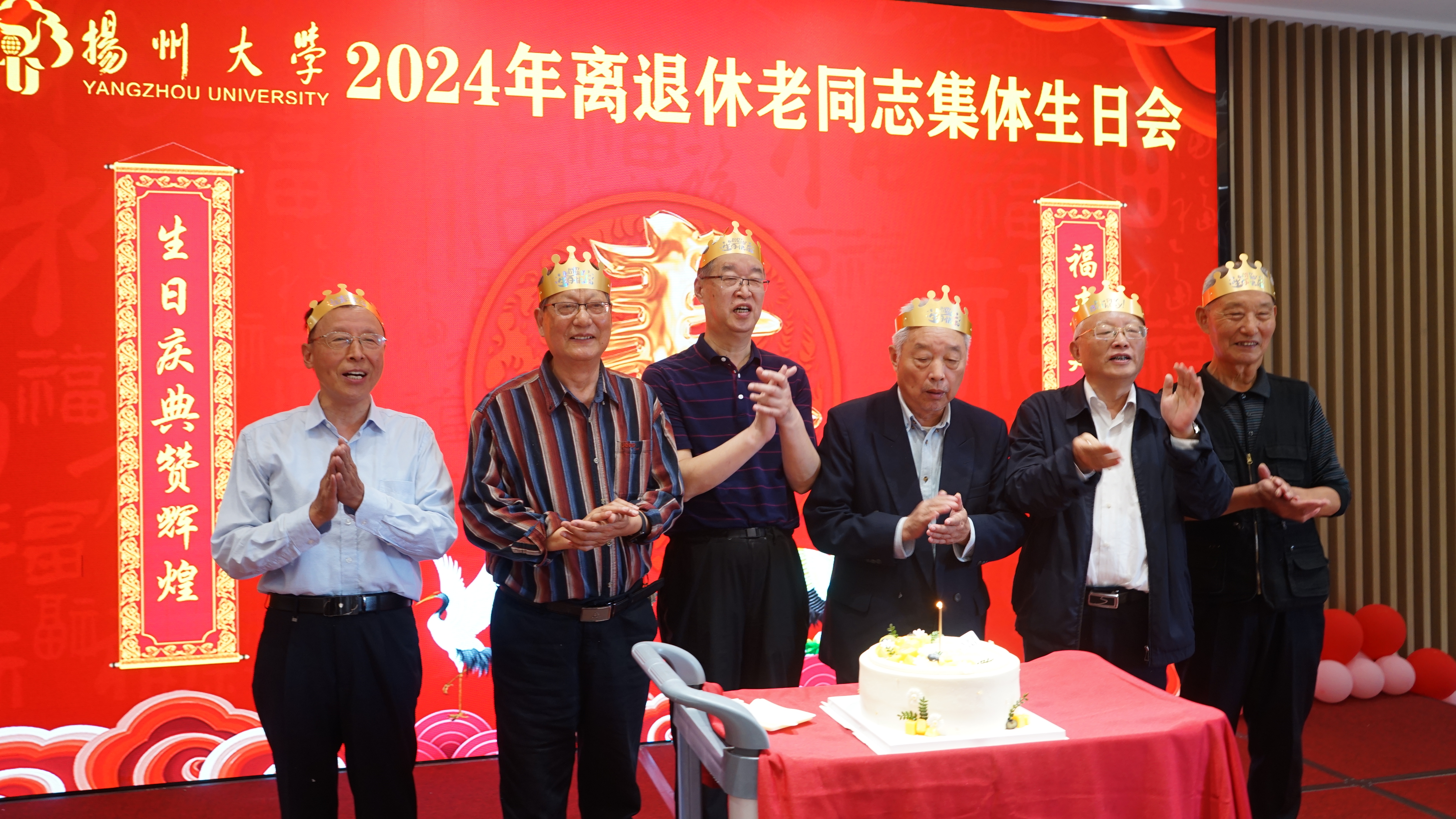 会上,6位寿星代表上台切蛋糕吹蜡烛,大家合唱歌曲《祝你生日快乐》,共祝老寿星们生日快乐。
