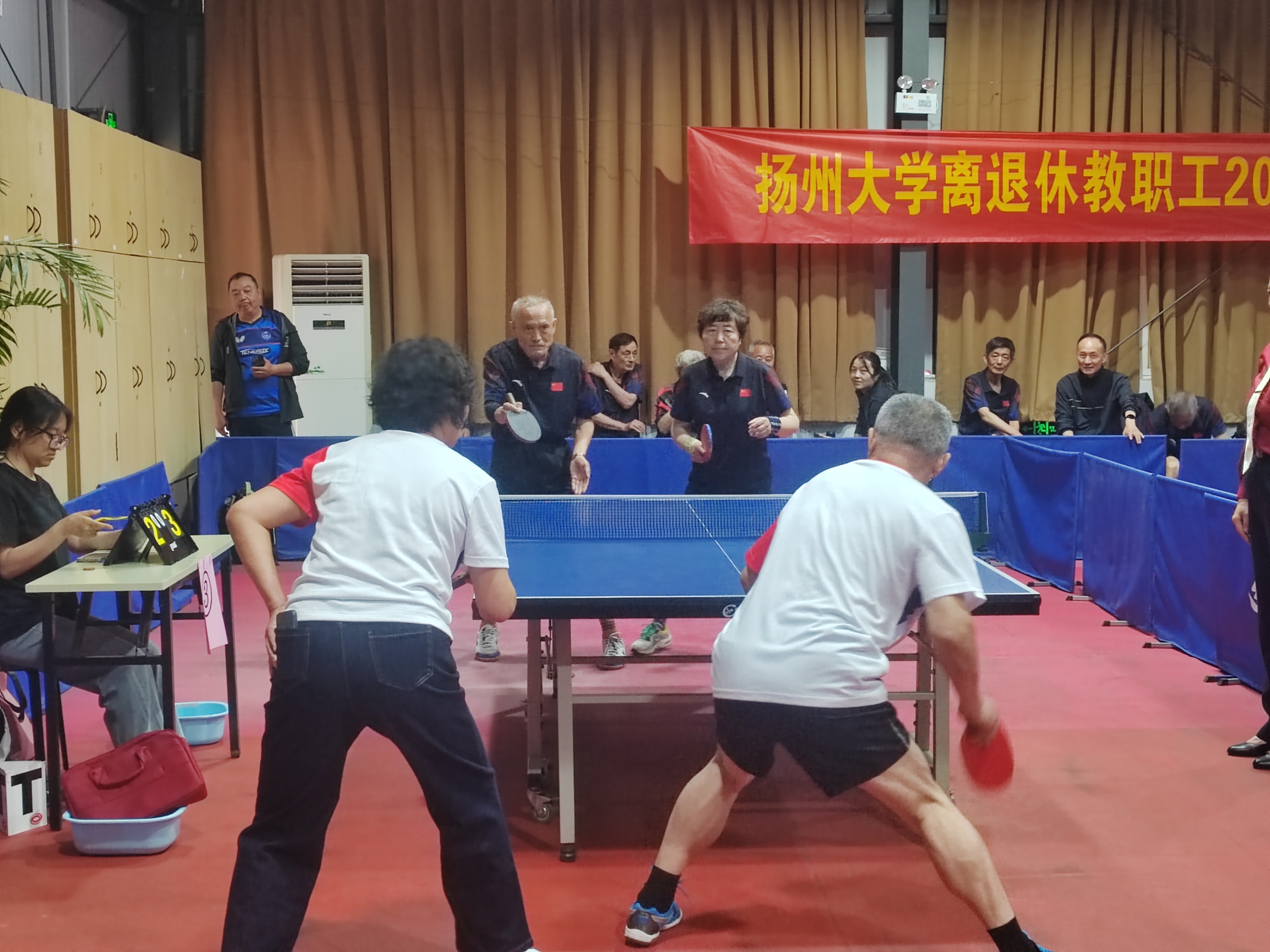 本次比赛是我校连续第二年举办的全校性离退休教职工乒乓球赛事,融健身、竞技、娱乐于一体,共吸引来自各校区及扬大附属医院的9支代表队近80名老同志选手参赛和300余人次老同志现场观赛,充分体现了老年乒乓运动的广泛性、竞技性和娱乐性,受到广大老同志充分肯定和普遍欢迎,其意义已经超越了单纯的体育竞技范畴,成为一场跨越年龄职业、触动心灵的思想交流盛会。整个组织工作井然有序、有条不紊。
