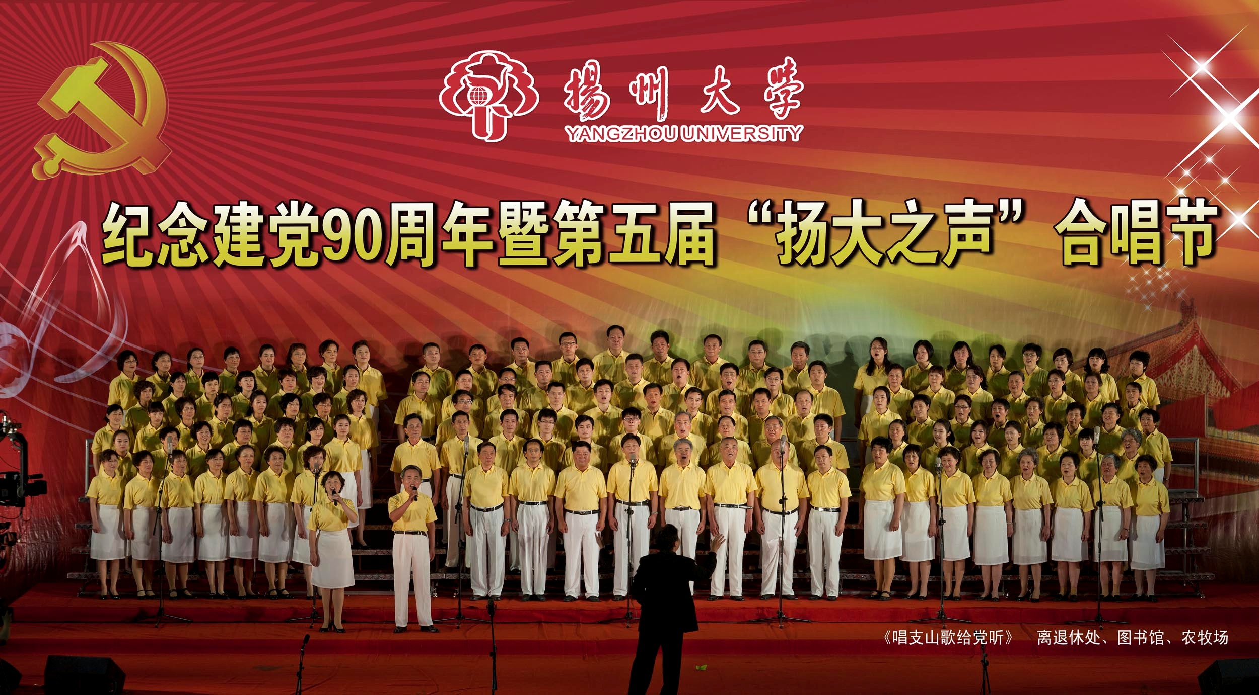 在五月二十一日举行的扬州大学庆祝建党90周年暨第五届“扬大之声”合唱节上,离退休处、图书馆、农牧场三个单位共同演唱的“唱支山歌给党听”取得二等奖的好成绩。