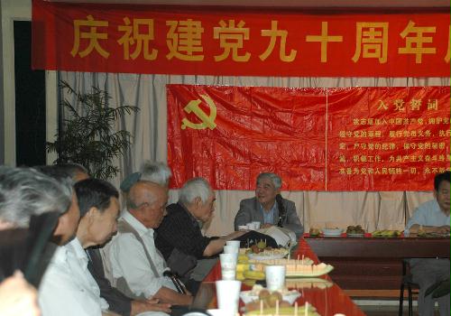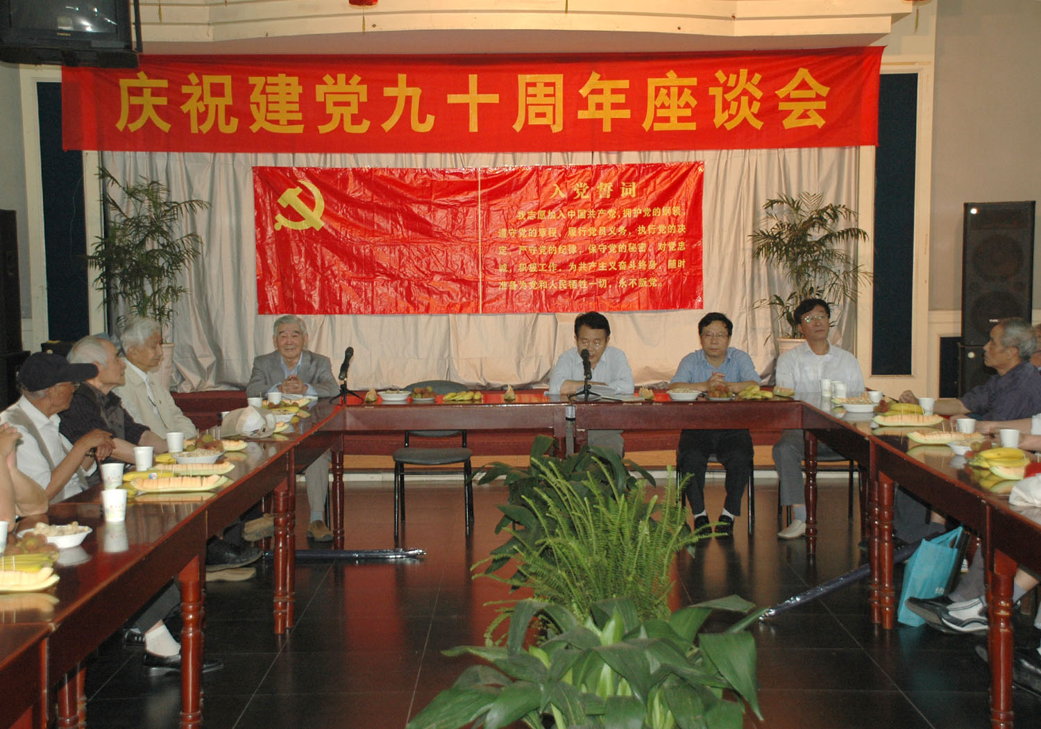 16日下午3:00,文汇路校区离退办二楼会议室灯火通明,喜气洋洋,三十多位建国前加入中国共产党的老党员、厅局级老领导欢聚一堂,共同庆祝建党九十周年。座谈会由校区离退休党总支书记主持。老党员、老领导、90高龄的离休老干部朱步连首先抒发感情,吟诗颂党;接着其他老党员、老领导纷纷发言,回顾九十年来我们党所走过的光辉历程、丰功伟绩、历史重任。最后,离退休工委书记卫金华同志讲话表示要以老领导、老党员为榜样,发扬党的传统,保持党员本色,积极参加争先创优活动,为学校事业、为党的事业贡献力量。