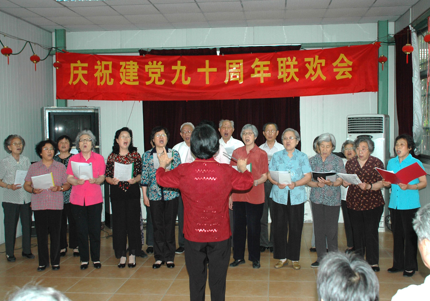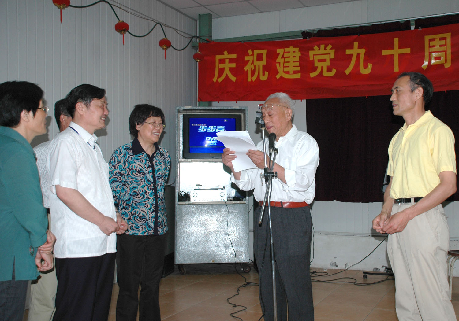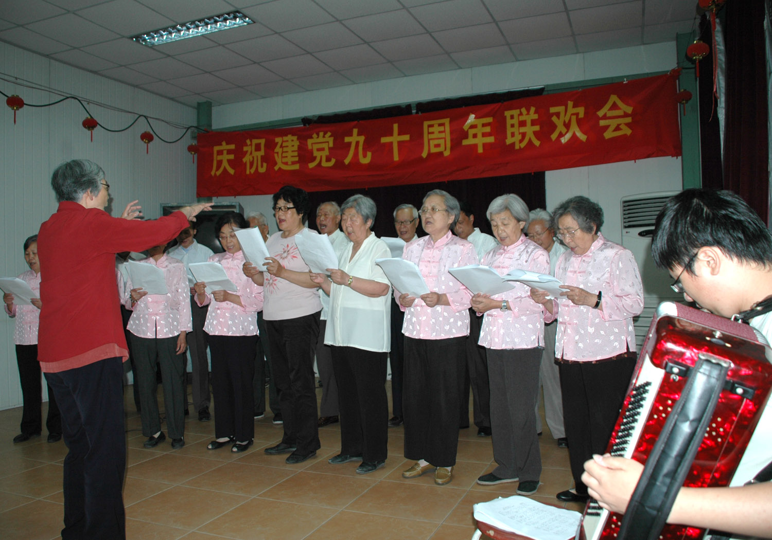 6月15日下午,路北校区举行庆祝建党九十周年联欢活动,出席活动有离退休处的领导、离休老干部、原老领导、老党员和一部分党外人士共近120人。下午,大家共聚一堂,通过发言、唱红歌、扬州小调、诗朗诵、舞蹈、党史知识问答等形式,热情缅怀党的光辉历程,歌颂党的丰功伟绩,气氛热烈,一曲“没有共产党就没有新中国”把联欢活动推向高潮。