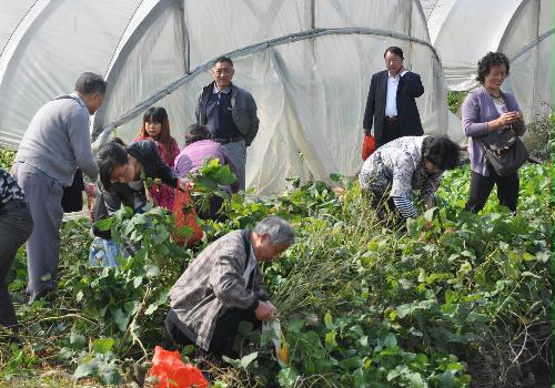 盐阜路校区离退办为庆祝中国的传统节日—重阳节,组织老同志参观了沙头蔬菜基地, 本次活动共有七十多人参加,18—19日上午,阳光明媚,秋高气爽,离退休老同志兴致勃勃从校区门口乘车前往沙头蔬菜基地参观,老同志还参加了田头采集新鲜蔬菜的活动。