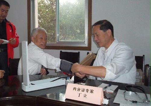 在全国第三个敬老月淮海路校区离退办组织退休后被返聘在苏北人民医院、中医院相关科室的专家,利用他们难得的周末休息日,为小区居民开展便民义诊,以此来推动全社会尊老、敬老、爱老、助老的良好氛围。三个多小时的义诊现场,闻讯而来的居民百姓络绎不绝。专家们耐心细致地为社区百余位老年人测量血压、血糖、检查心律、肺功能以及妇科疑难杂症,并对前来求医问药的百姓给予饮食保健、合理使用药物指导,吴登云班的同学向居民发放《老年人用药四宜四不宜》、《服药忌口并非多余》、《草药的特殊煎煮法》、《客观认识中药注射剂》、《西洋参的使用》等数十种科普资料达二百多份,受到小区居民的欢迎。学生们也从活动中学到医学书本之外的东西,尤其是老专家高超的医术、医德。