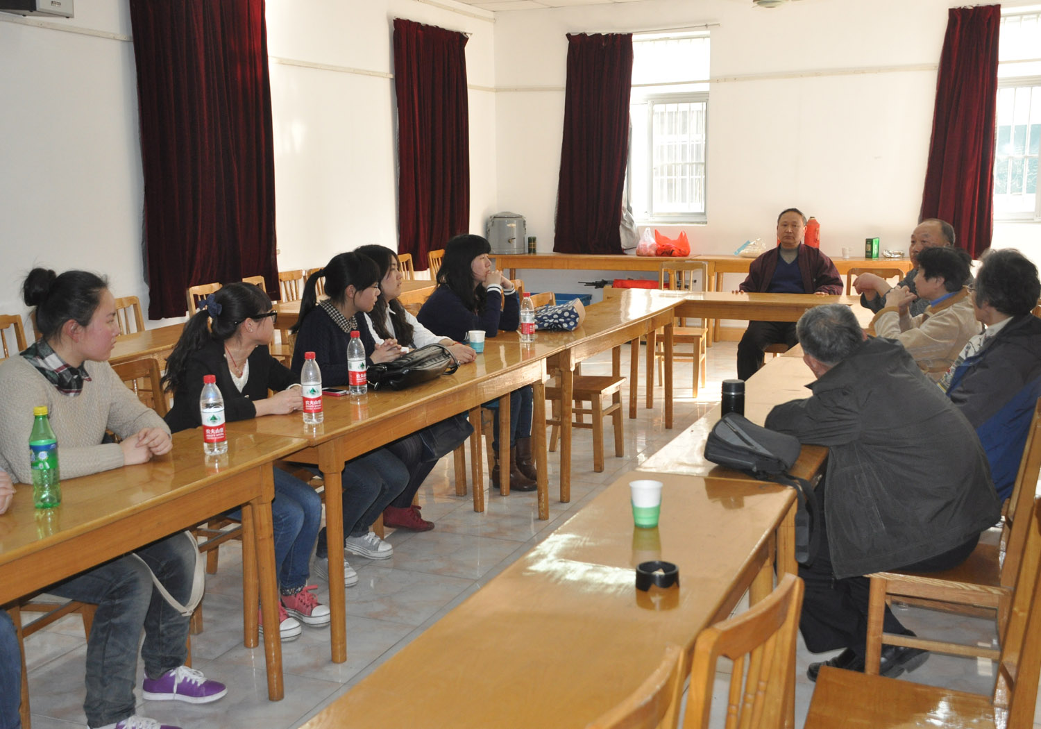 3月9日下午,旅游1201班7名两委会的学生干部作为班级代表来到盐阜路校区离退休办公室与老同志进行交流学习雷锋精神的主题团日活动。老同志介绍了雷锋同志的生平事迹和自己学习雷锋精神的亲身体会,举例身边的活雷锋等教育青年大学生要学习传承雷锋的奉献精神,钉子精神和艰苦奋斗精神。讨论了当代弘扬雷锋精神的深刻内涵。同学们对雷锋同志的名言 “人的生命是有限的,可是为人民服务是无限的。我要把有限的生命,投入到无限的为人民服务之中去。”留下了深刻的印象。深感,学习雷锋并不难,但要做到学雷锋一辈子,切实达到他的境界是不容易的。愿雷锋精神永存,世界更加美好。同学们和老同志还共唱《学习雷锋好榜样》《映山红》《东方红》等经典红歌。主题团日活动在一片欢声笑语中结束。