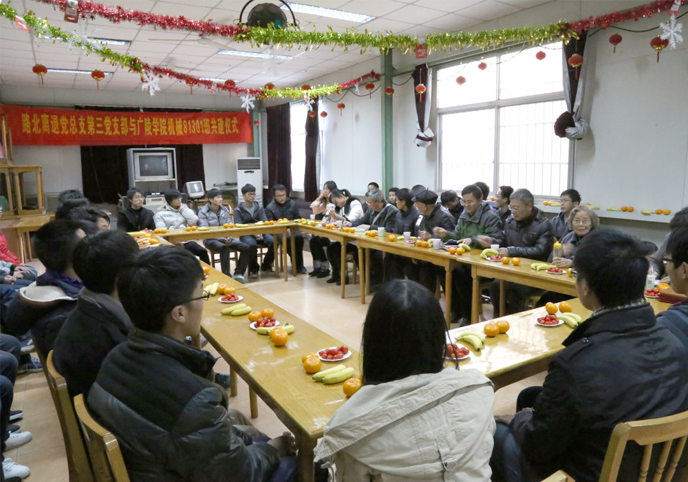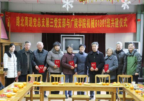 11月29日下午,在江阳路北校区离退休活动室举行了离退休第三党支部与广陵学院机械81301班共建和广陵学院“大学生课外辅导员”聘任仪式。