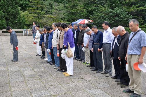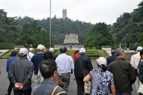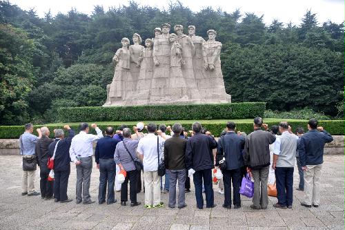 下午,我们又驱车来到雨花台革命烈士陵墓。为了继承革命烈士的遗志,为了表达对烈士的敬仰之情,我们在烈士们的雕像前默哀一分钟。面对山顶上巍巍矗立的革命烈士纪念碑,我们站在雕像前重温了入党誓词。这宏亮的声音在雨花台烈士陵园上空回荡者。它表达了我们这些老党员的心声:铭记历史,警示未来。为实现中华民族伟大复兴的中国梦而努力奋斗!