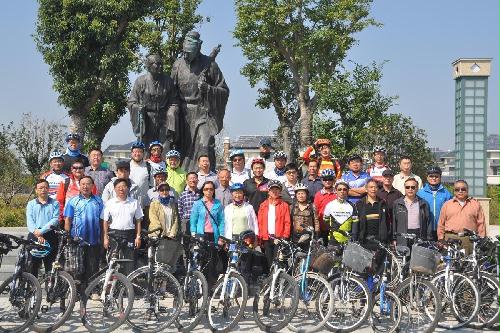 校“绿色行”自行车协会于2014年10月7日成功组织国庆黄金周安徽天长秦栏省际行。共有18个单位的41名会员参加了活动,往返约90公里。大家享受着蓝天白云、清风稻香,沿着上下起伏的丘陵行进,相互鼓励,得到了很好的放松和锻炼。秦栏古镇不仅有风味独特的全鹅宴,而且有丰富的历史遗存,在宋代十十四孝之首朱寿昌亲手所植的千年古柏下和孝子广场上大家受到了一次很好的传统文化教育。随着“绿色行”自行车协会影响的扩大,不少职工的家属、子女也主动申请加入,协会绿色出行、运动健康的理念得到了很好推广。