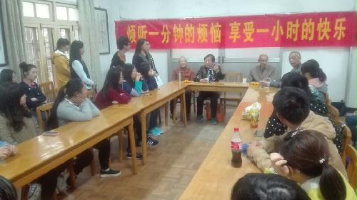 11月4日下午,江阳路南校区退休老同志心理咨询组和广陵学院学生心理协会在校区办活动室举办了“倾听一分钟的烦恼,享受一小时的快乐”集体心理访谈活动。大学生们分别就学习生活、交友交流等方面遇到的问题和退休老同志心理专家们进行了沟通,许多同学表示这种形式的访谈活动使自己受益匪浅,老专家们富有经验,对广大学生的心理指导成效明显,这一形式的活动已成为老少共建工作中的亮点。