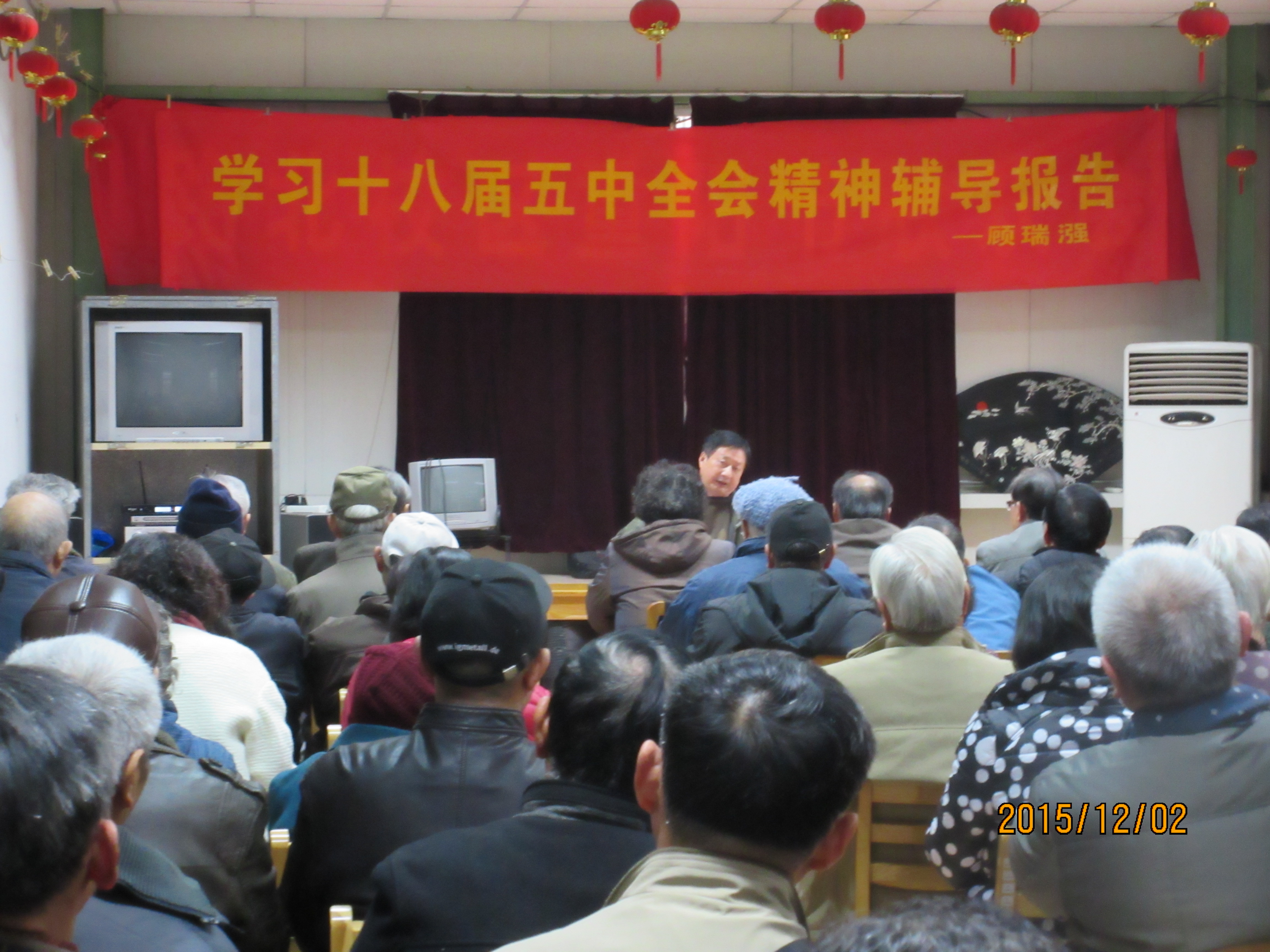 12月2日上午,离退休党工委组织全体工作人员和江阳路北校区离退休党员在江阳路北校区离退办,听取了十八届五中全会精神专题辅导报告。