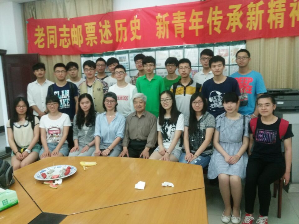 管老师热爱收藏,本次活动展出的1384张邮票都是管九锡老师精心收藏并整理的,一枚枚小小的邮票,展现着党的光辉历程。82岁的管老师在耐心讲解邮票故事的同时,也向学生们介绍了自己收藏的经历,“在小学的时候刚接触到邮票,我就喜欢上了决定收藏下去,在退休之后把之前收集的邮票分门别类地整理出来,”管老师说,“今年是红军长征胜利80周年, 也是建党95周年,所以我把和党史相关的邮票展出来,方便大家学习。”管老师带领学生们感受方寸之间承载着的波澜壮阔的历史,从毛泽东、邓小平到抗战英雄、中国科学家、共和国元帅以及红军长征、抗日战争、改革开放、传统节日无不在邮票上得到体现。一位展览现场的同学感慨地说:“邮票就是方寸之间尽显天地,而每一张邮票背后的故事也吸引着我,邮票展让我更深刻地了解到邮票的内涵。”