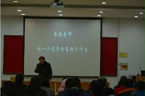 张牧老师就《勤奋工作,做一个称职的畜牧兽医工作者》娓娓道来,启迪学生成功应当具备“忠实的专业知识、勤奋工作、团队精神”三个条件,不断激励着学生更好更快的励志成长。