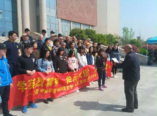 4月15日,文汇路校区退休第三党支部与共建班级兽医1401班同学一行40余人,前往泰兴黄桥古镇,进行了主题为“传承英烈精神,担当圆梦责任”的主题党日活动。老少共同祭奠英烈,诵读祭文,并先后参观了新四军黄桥战役纪念馆和中国海军诞生地——白马镇海军纪念馆。生动的革命传统教育,激励了同学们传承先烈遗志,奋发学习、报效祖国的热情。