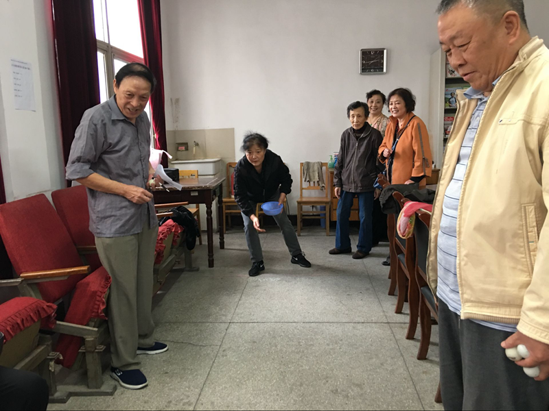 老同志欢聚一堂,饶有兴致地参加了掷骰子、掷飞镖、投乒乓球、保龄球等趣味活动项目。老同志们神情专注地投入比赛,既有80、90多岁的老同志,还有刚刚进入退休行列的“新兵”。他们精神矍铄,各显身手,热情高涨,欢声、笑声、喝彩声不断,充分展示了老同志健康、向上的精神风貌。
