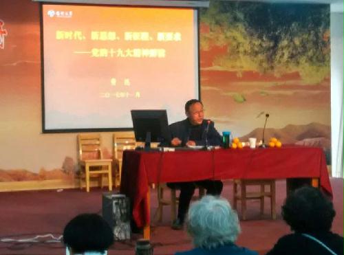 11月9日,文汇路校区离退休党总支邀请了马克思主义学院退休教授费迅作《学习党的十九大精神专题辅导报告》。
