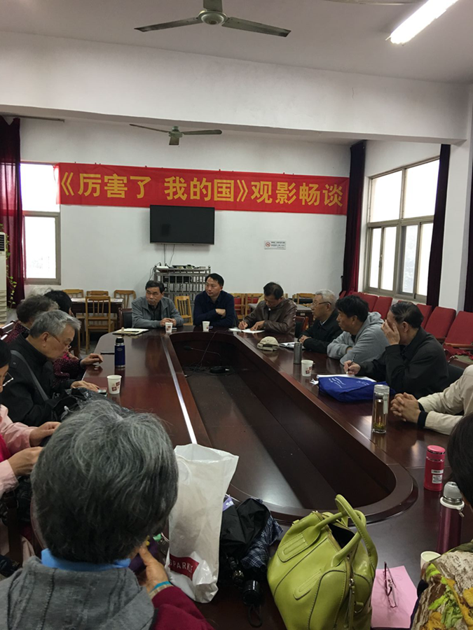 4月10日下午,淮海路校区离退休党总支组织离退休人员观看了大型记录电影《厉害了,我的国》。12日下午,组织党员召开了观影畅谈会。