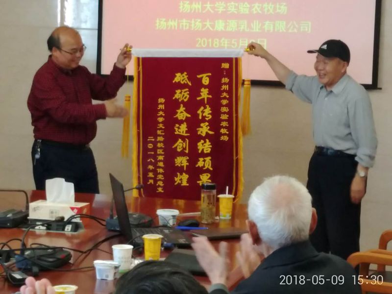 今年适逢学校实验农牧场建场100周年,大家来到了校实验农牧场的牛奶加工厂区,听取了农牧场党总支张建军书记和林建群场长的介绍,对农牧场的教学科研、生产管理、乳品生产销售、提供大学生实习等情况有了全面的了解。农牧场常年坚持每天为扬州市残障儿童免费赠送爱心牛奶的行动让委员们赞叹不已。