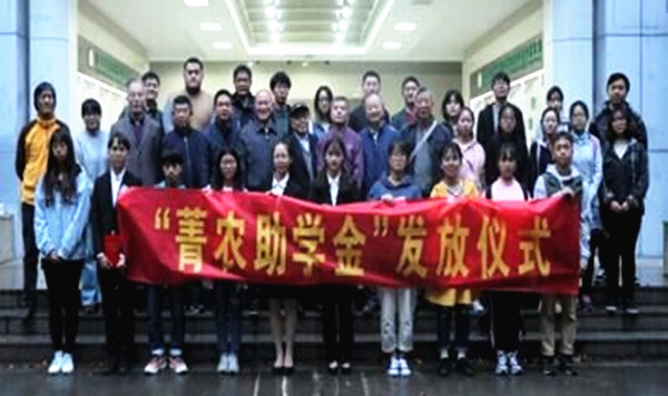 朱吉勤书记代表文汇路校区离退休党总支介绍了“菁农”助学金的使用情况,并表示“菁农”助学金将源源不断地汇聚离退休人员的爱心,不断地传递到贫困学子手上,不断培养受益学子们的感恩之心,希望他们以自觉的行动和努力,全面提升自己的能力与水平,完成好在大学期间的各项任务,并积极向党组织靠拢。