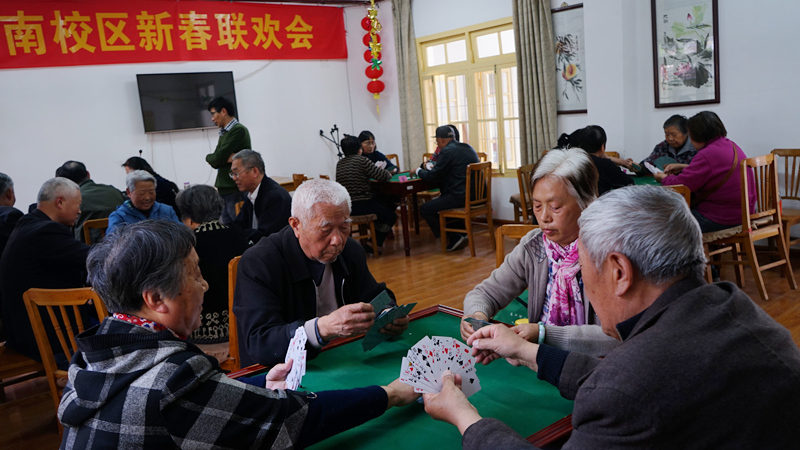 4月18日下午,江阳路南校区离退办在活动室举办了一年一度的掼蛋友谊赛。老同志们兴致勃勃,踊跃报名,共有30余名退休老师参加了本次活动。在比赛过程中,既有欢声笑语,也有紧张斗智。通过这次活动,大家既收获了好心情,也让脑力得到了锻炼。