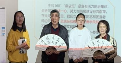 4月18日上午,文汇路校区退休第四党支部部分党员与生科1601“麻袋班”召开“祖国壮丽70载,老少奋进新时代”主题的座谈会。受资助学生代表、“麻袋班”班长、老少共建社团负责同学代表相继发言,学生代表还向老同志赠送了手绘书法作品。