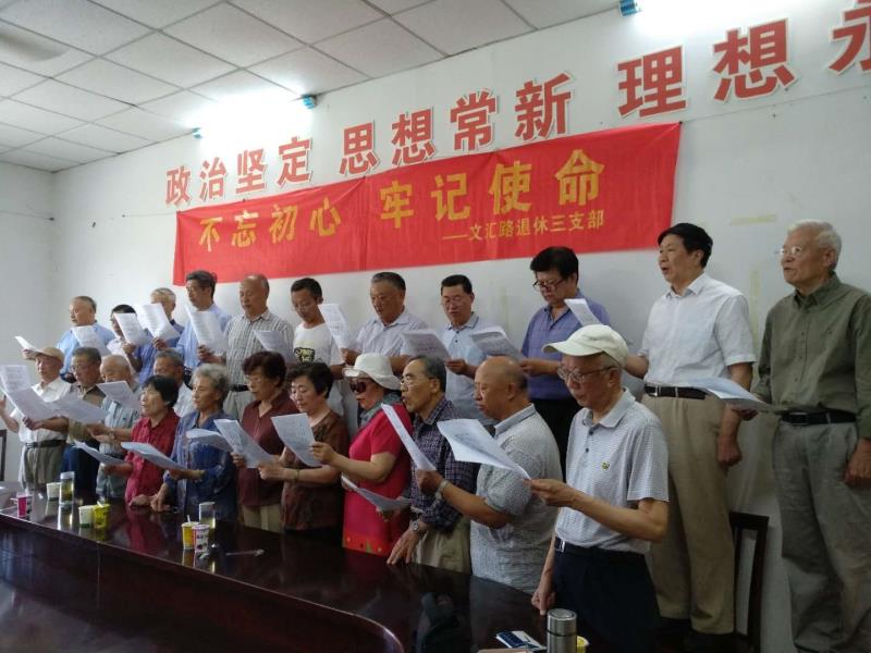 文汇路校区退休第三党支部以“不忘初心,牢记使命”为主题,开展红歌颂文化活动。老党员们深情齐唱《东方红》、《没有共产党就没有新中国》等经典歌曲,表达发自肺腑的对党的一片深情。