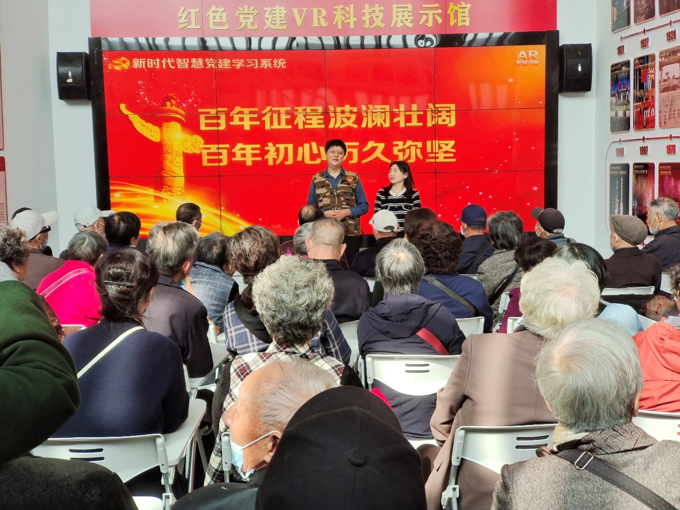 在党史馆,老党员们零距离的聆听了扬州一等功臣葛新峰讲述的英雄事迹,为了保护军队雷达站,在危急关头决然冲进火海,身负重伤荣立一等功,在救治过程中承受了常人难以忍受的疼痛折磨,一次次闯过生命危险的关口,英雄让我们老党员们看到了和平年代,年轻的共产党员军人临危不惧、不怕牺牲、无私奉献的大无畏革命精神。而军嫂鲍宏艳凭着自己对英雄的崇拜和热爱,克服重重困难与这位二级伤残军人恋爱、结婚,用实际行动谱写了一曲感人肺腑、催人奋进的爱的赞歌,给我们退休的党员们上了一堂非常生动的党课,大家眼含热泪,将长久不息的热烈掌声送给最可爱的人。