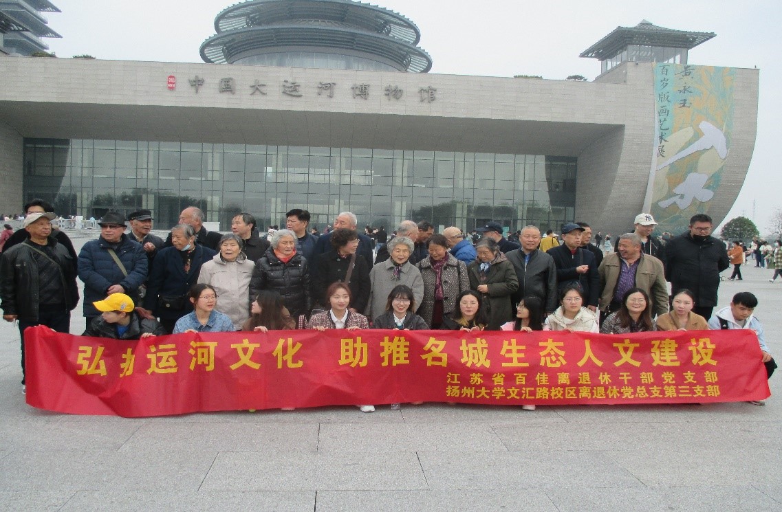 2023年4月6日,烟花氤氲,桃红柳绿,春色宜人,江苏省离退休干部“六有一提升示范支部”、江苏省百佳离退休干部党支部——扬州大学文汇路校区离退休党总支第三党支部与共建班兽医学院动医2002和园艺园林学院园艺1901部分师生开展“弘扬运河文化,助推名城生态人文建设”主题党日活动。