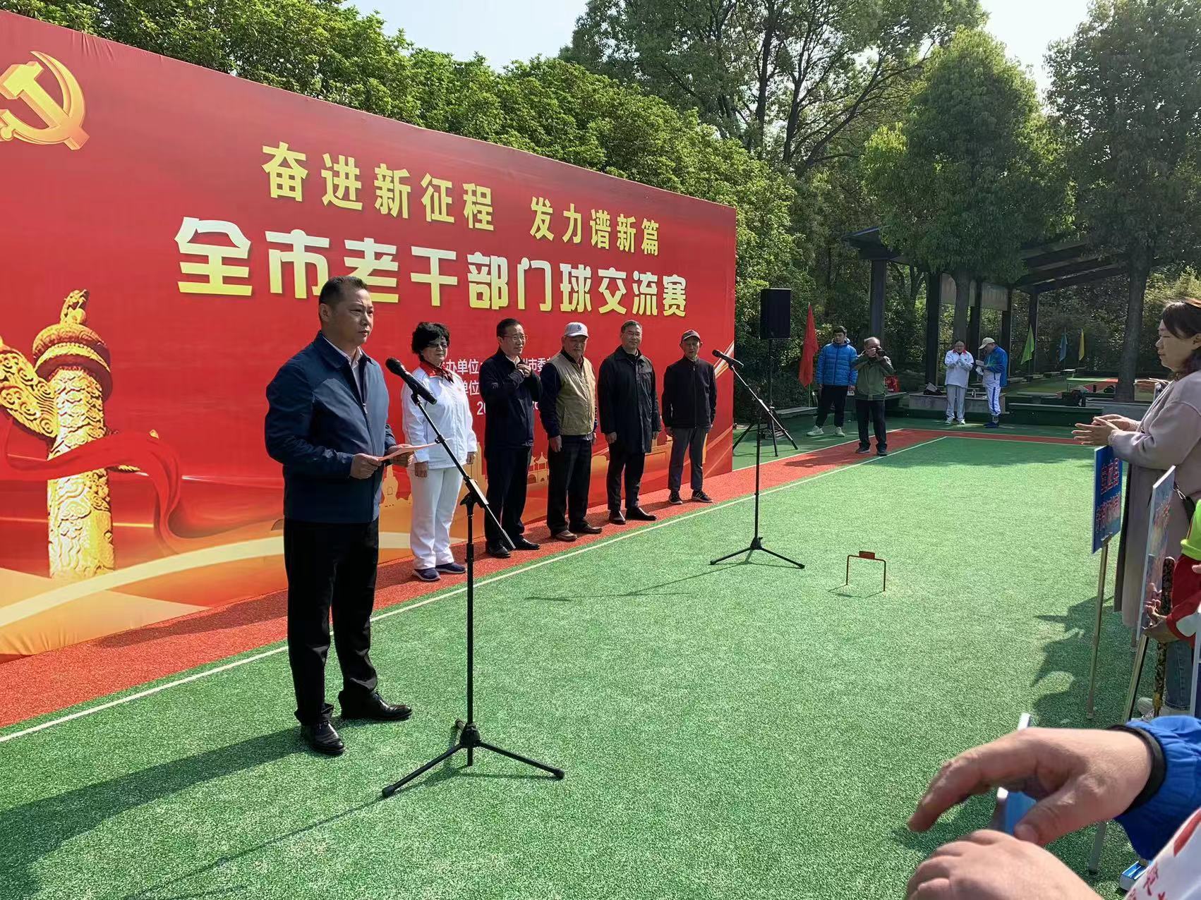 门球交流赛开幕式由扬州市老干部活动中心主任徐爱民主持,中共扬州市委局离退休工委副书记骆礼国致辞,市人大原副主任、市老干部门球协会会长魏芝田宣布开幕,扬州大学离退休处副处长孙春祥及市辖区县老干部局领导出席。