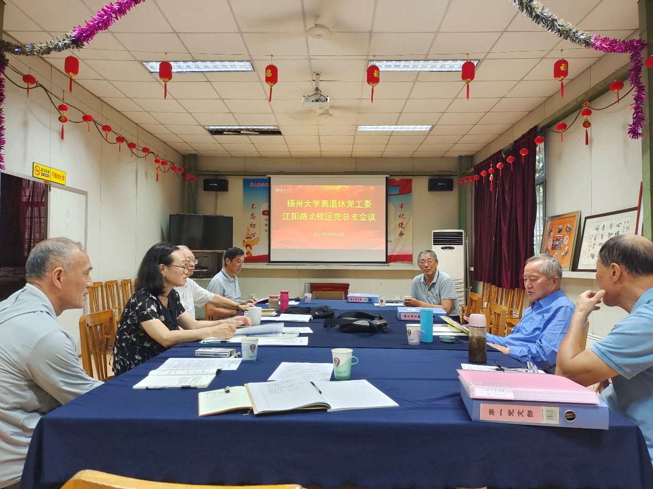 9月14日下午,江阳路北校区离退休党总支在校区老年之家会议室召开总支扩大会议,传达学习离退休党政新学期工作会议精神,谋划部署下半年工作安排。党总支书记周详同志主持会议。党总支全体委员、各支部书记及部分委员、路北校区离退休科负责同志出席了会议。