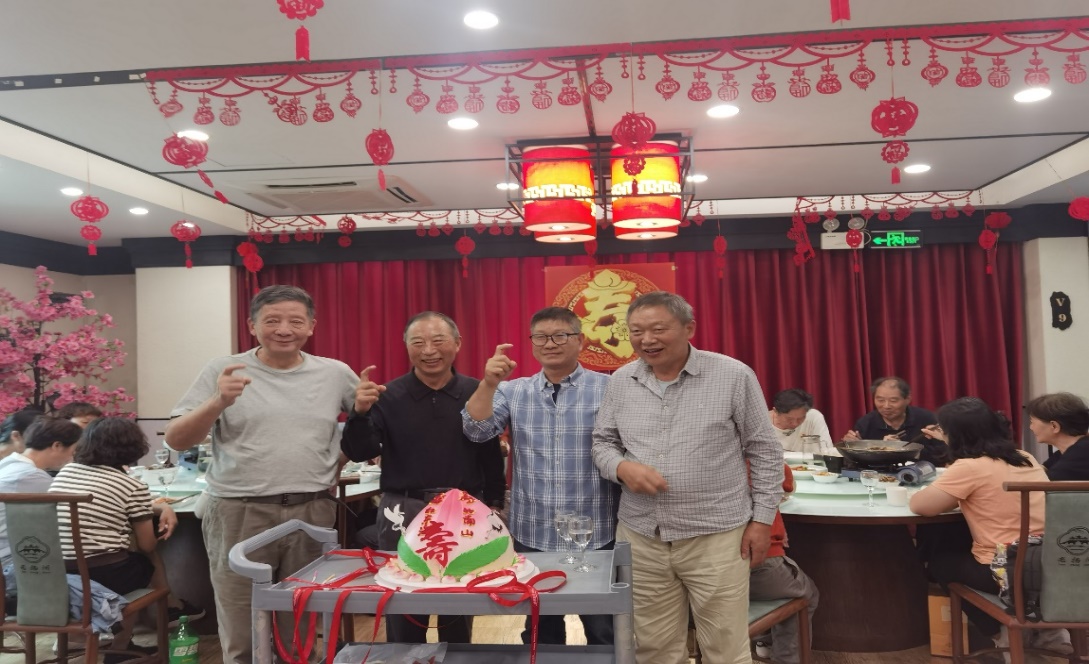 现场气氛温馨而热烈,老同志纷纷在祝寿会现场合影留念,记录下这温馨美好的时刻。校区离退休党总支委员和部分老同志骨干参加了此次祝寿活动。
