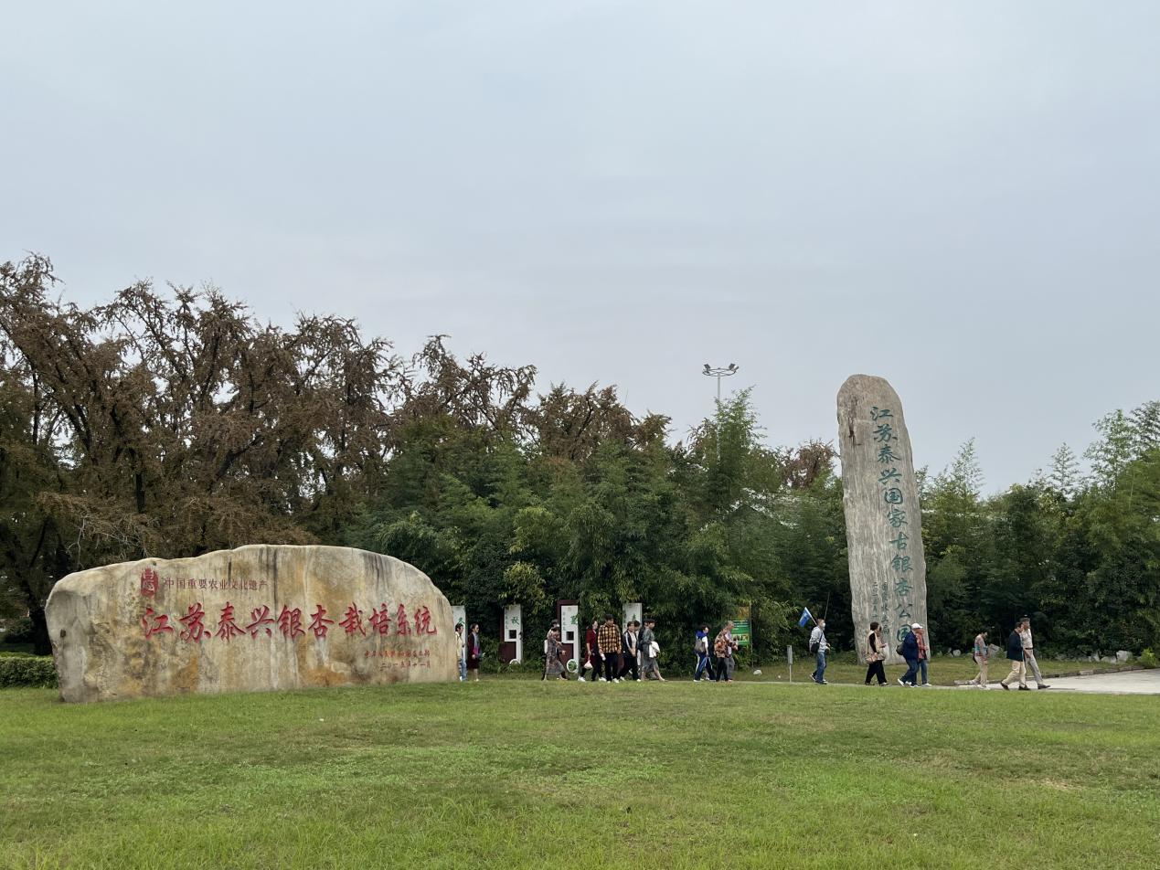 考察活动最后,老同志们来到了位于“天下银杏第一镇”宣堡镇的泰兴省级古银杏森林公园。大家漫步郁郁葱葱的银杏树林之间,欣赏百年银杏的枝繁叶茂、盘虬蜿蜒的独特风景,与其中两棵“银杏皇帝”、“银杏皇后”合影留念。